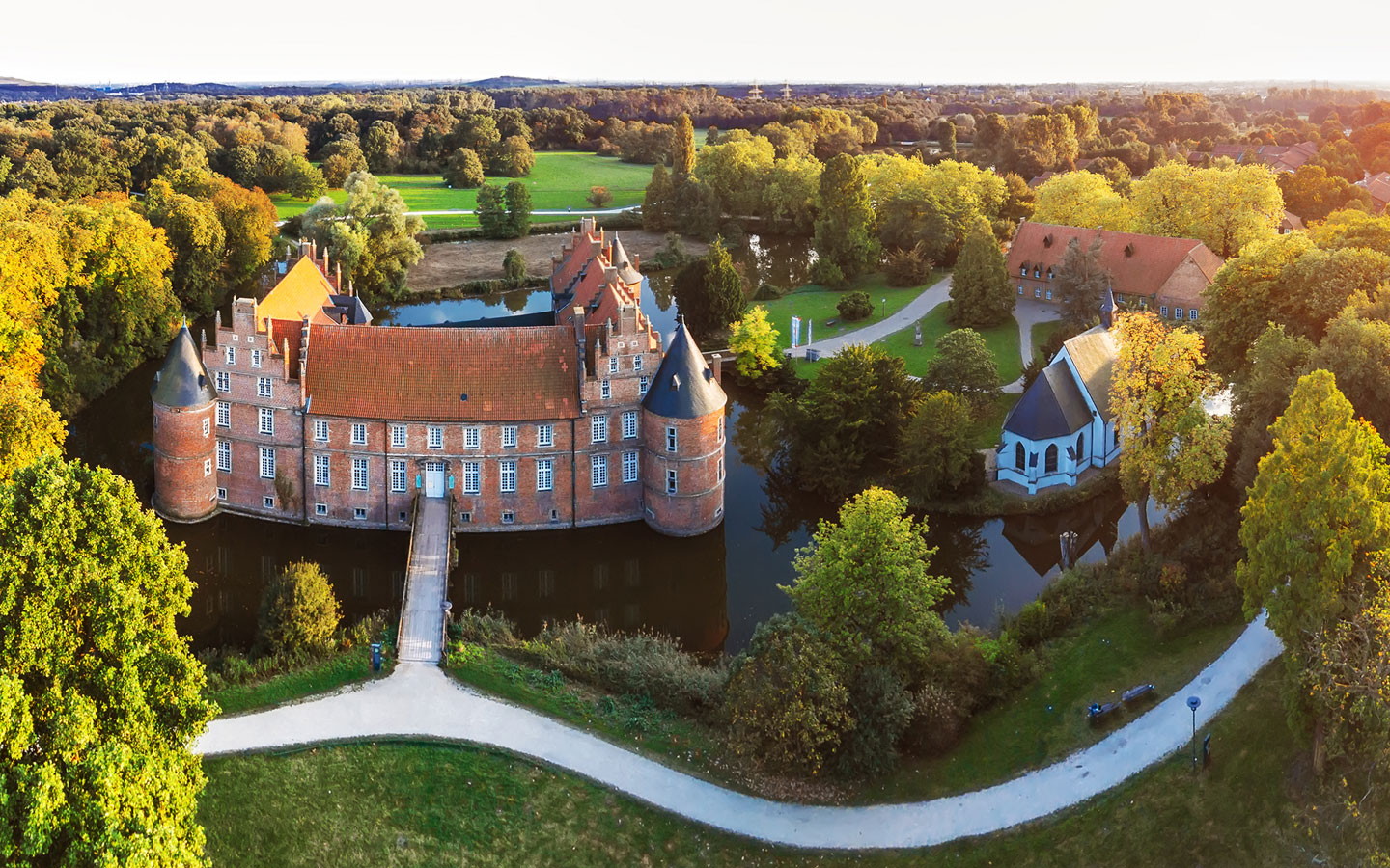 We couldn't imagine a better place to celebrate with you than Schloss Herten — a beautiful moated castle surrounded by water, trees, and just the right amount of fairytale atmosphere. Hidden in a peaceful park in Herten, this historic castle offers elegant rooms, lovely gardens, and plenty of space for hugs, laughter, dancing, and raising a glass (or two). We're so excited to share this special place with you and can't wait to celebrate together in such a magical setting.